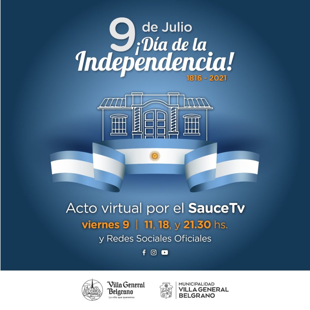 El viernes 9 de Julio a las 11, 18 y 21:30 hs. se llevará a cabo el acto virtual del Día de la Independencia en conmemoración de los 205 años de la emancipación de nuestro país.