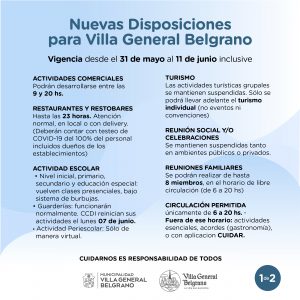 La Municipalidad de Villa General Belgrano continúa reforzando las acciones para frenar la propagación del virus a través de los Operativos Identificar, con el asesoramiento y acompañamiento de Cruz Roja Filial Rio Tercero, que en las próximas fechas de «Testeos Masivos Gratuitos y Voluntarios» se realizarán en Puntos Móviles dispuestos estratégicamente: