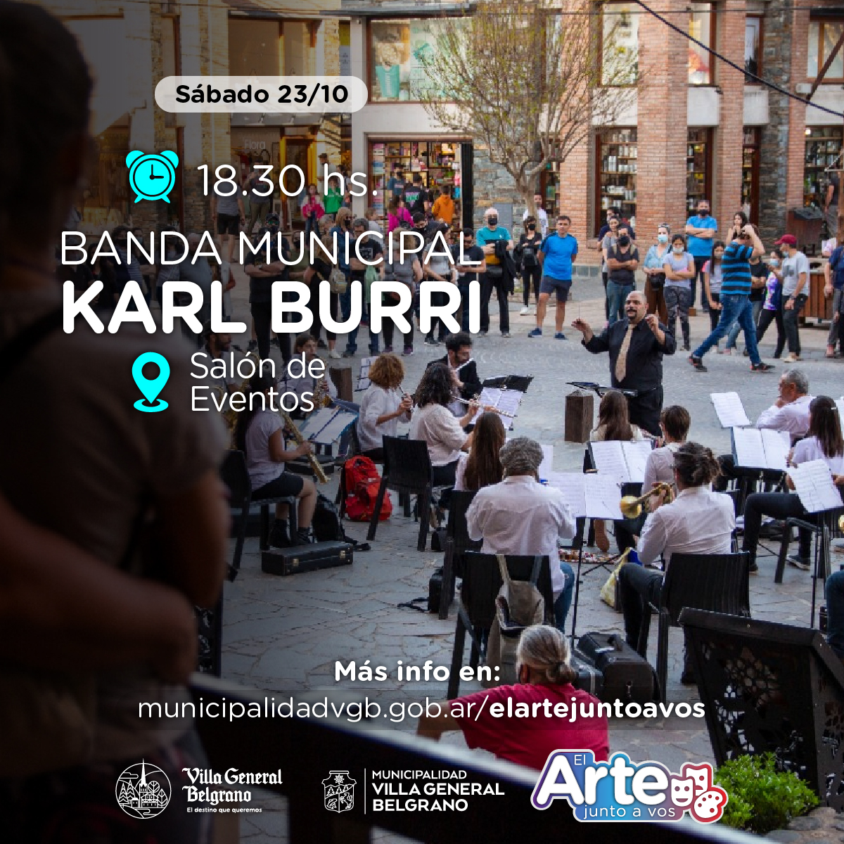 18.30 hs. – En la Explanada frente a Salón de Eventos actuación BANDA MUNICIPAL KARL BURRI.