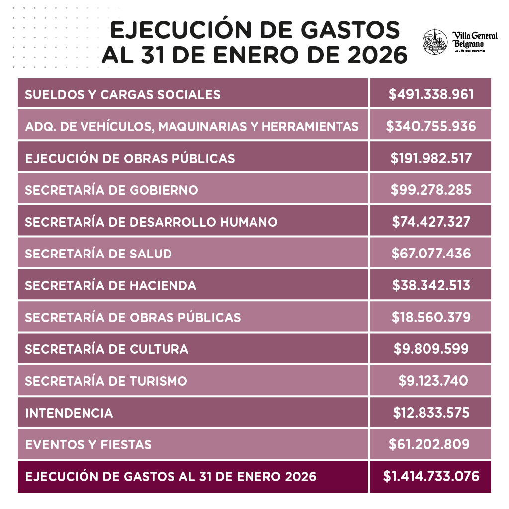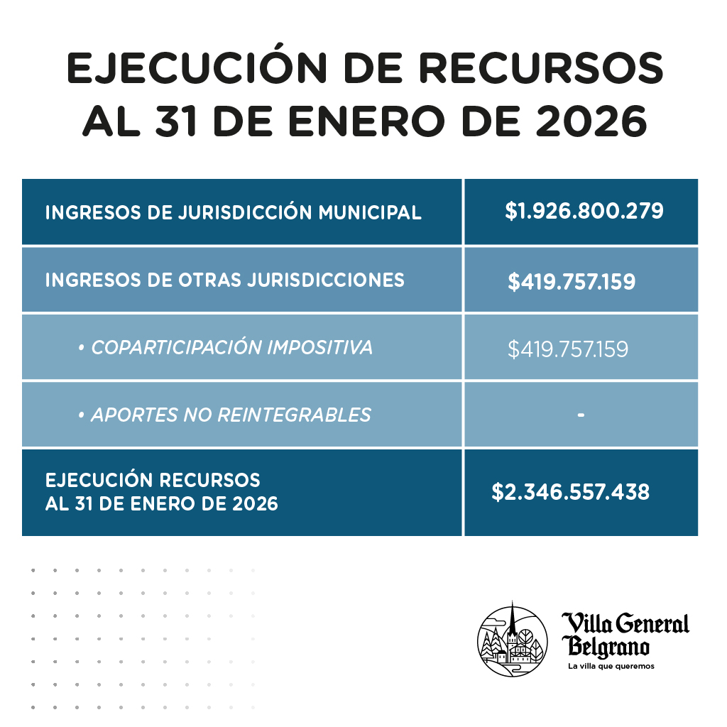 presentamos el Informe de Ejecución Presupuestaria de recursos y gastos al 31/01/2026.