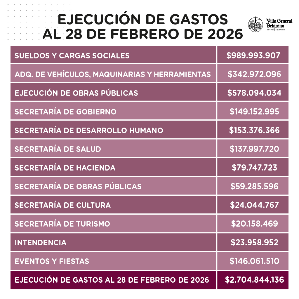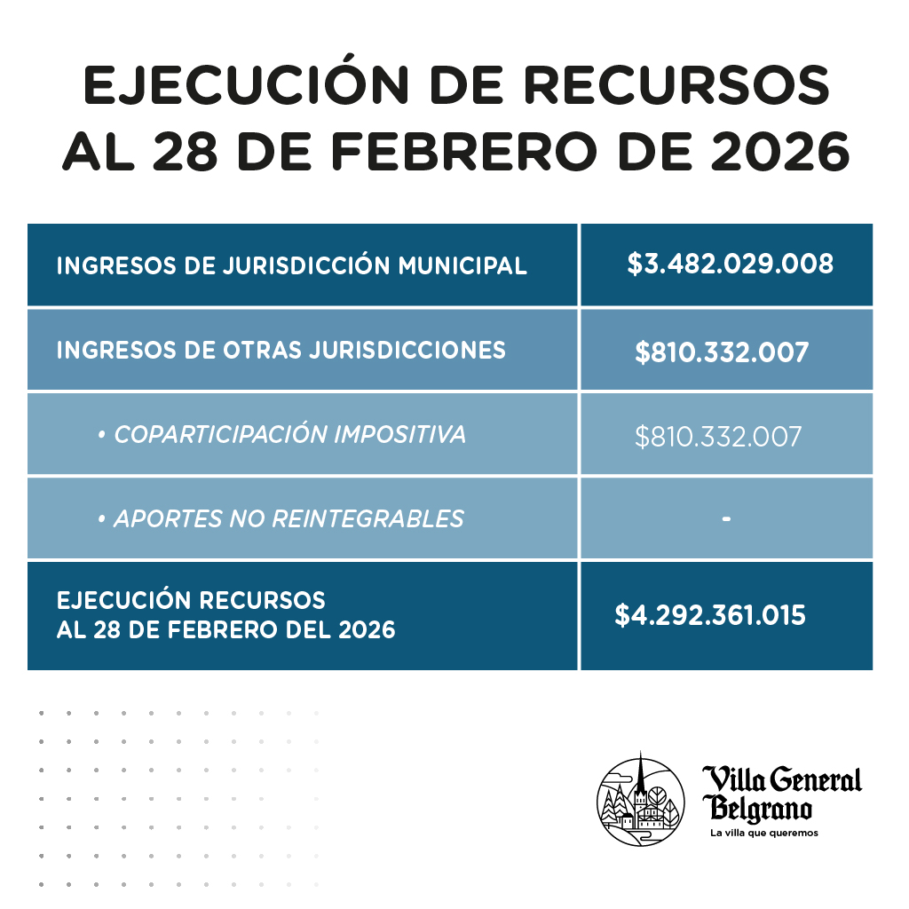 presentamos el Informe de Ejecución Presupuestaria de recursos y gastos al 28/02/2026
