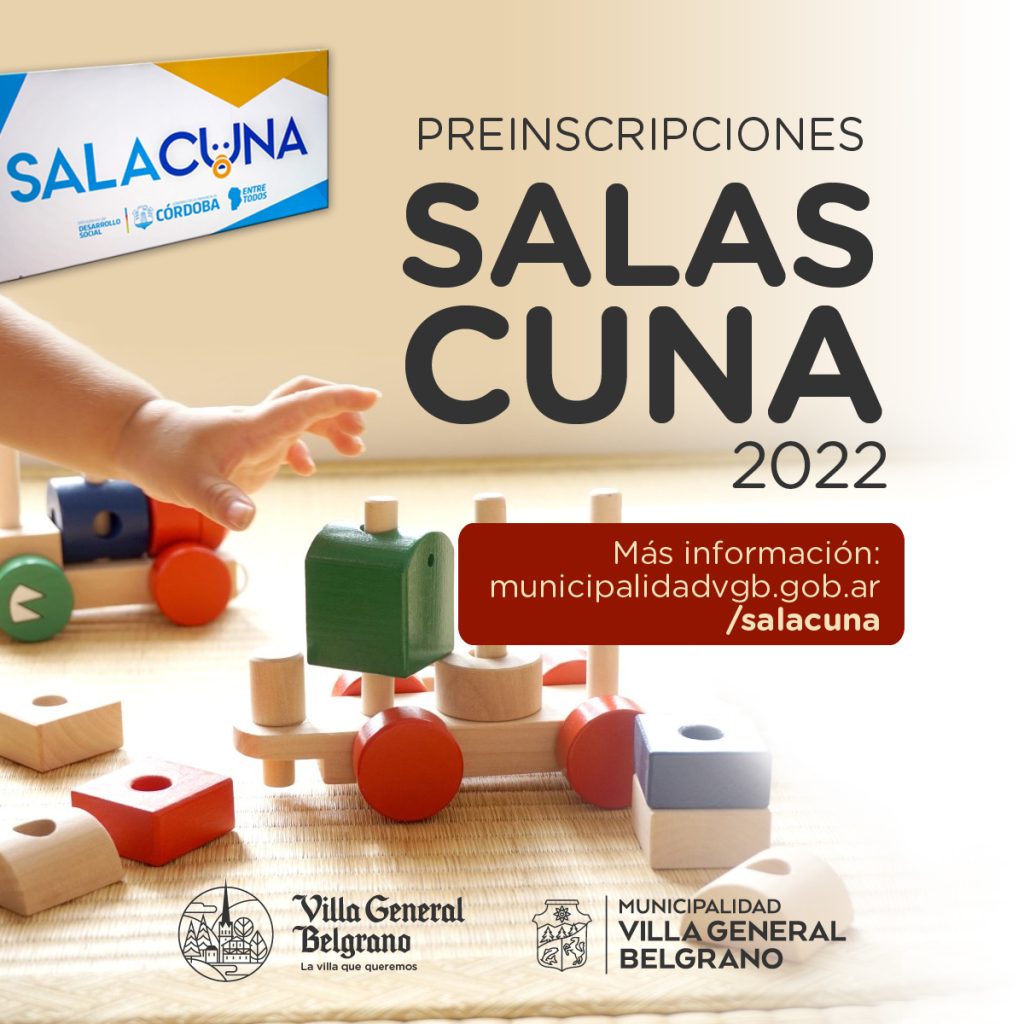 Del 22/11 al 26/11 del corriente se realizaran las preinscripciones de las salas cuna municipales para niños y niñas residentes en Villa General Belgrano desde los 6 meses y hasta los 3 años.